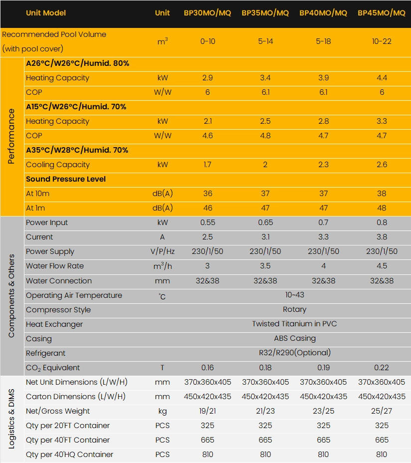 Cube Ω Series is designed for above ground pool. It provides an auto-defrosting system. It can be used year-round.