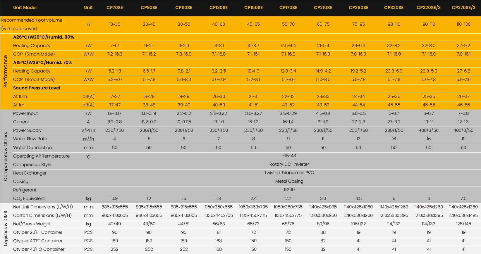 “Inver-CORE” is powered by advanced unique full DCinverter technology which allows you to vary the speed of the compressor and speed fan motor. It makes swimming pool heat pumps achieve an extremely high COP.